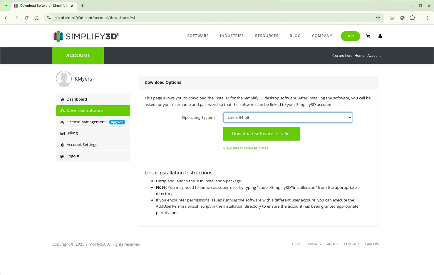 2) Download the "Linux 64 Bit Version" of Simplify3D