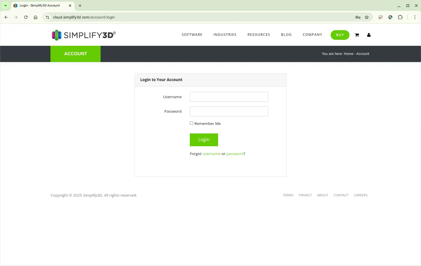 1) Log into the Simplify3D Customer Portal