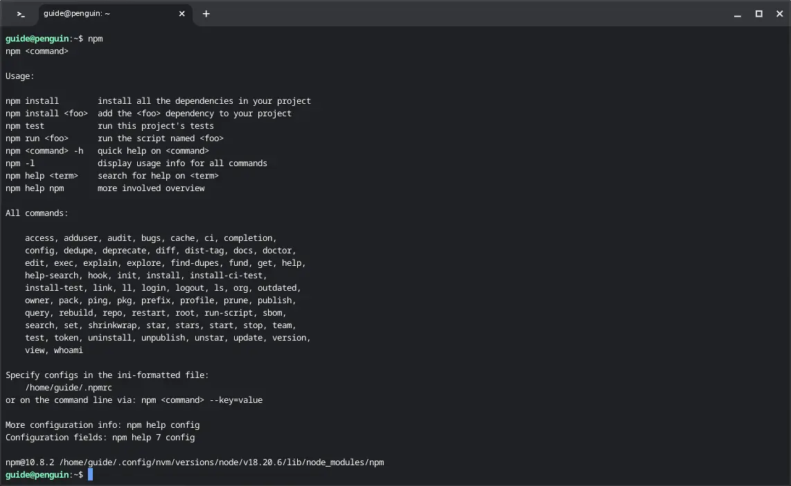 bash node -v npm -v