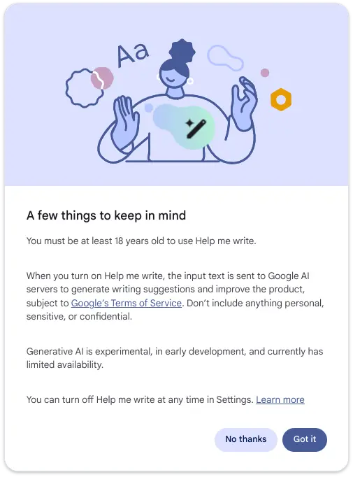 Google Gemini - Help Me Write